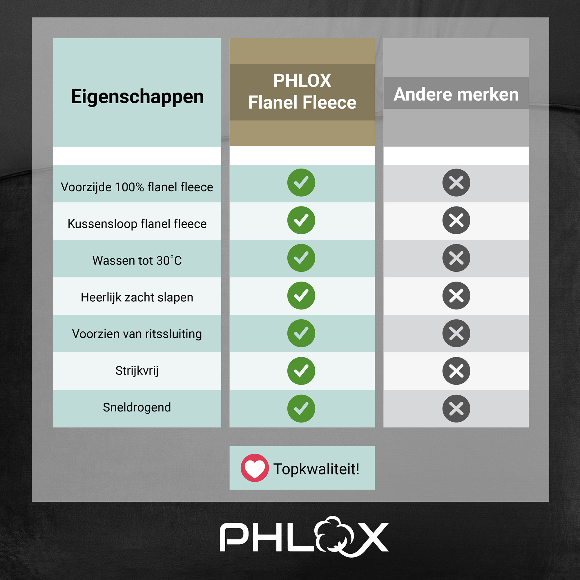 • 100% Flanel Fleece polyester bovenzijde